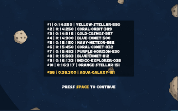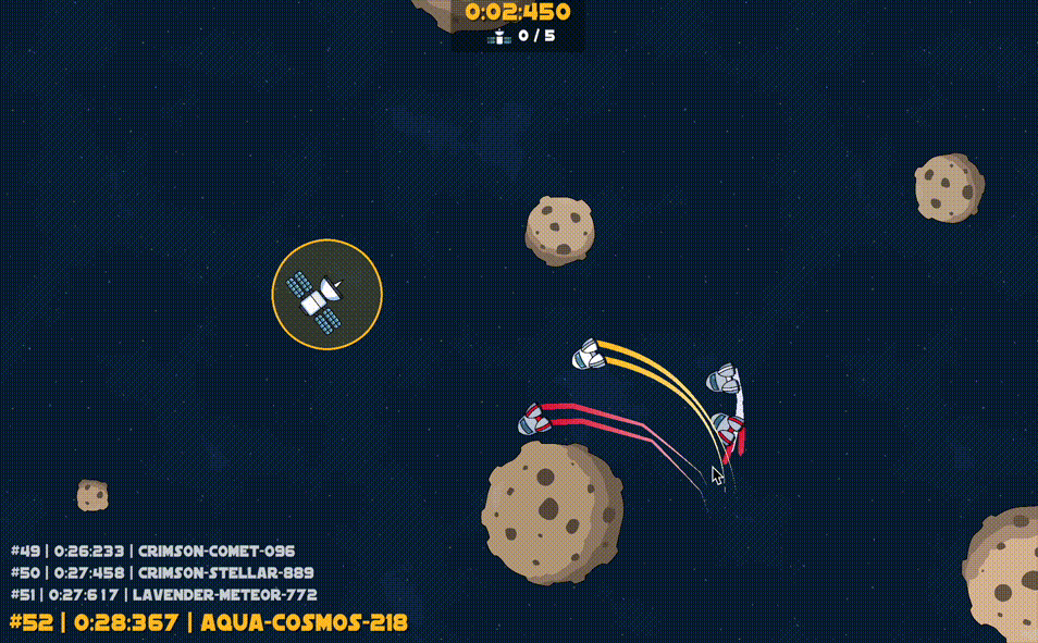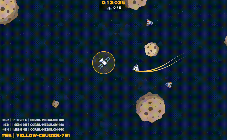 Asteroids meets TrackMania. Compete against other players for the fastest time through a zero-gravity obstacle course.